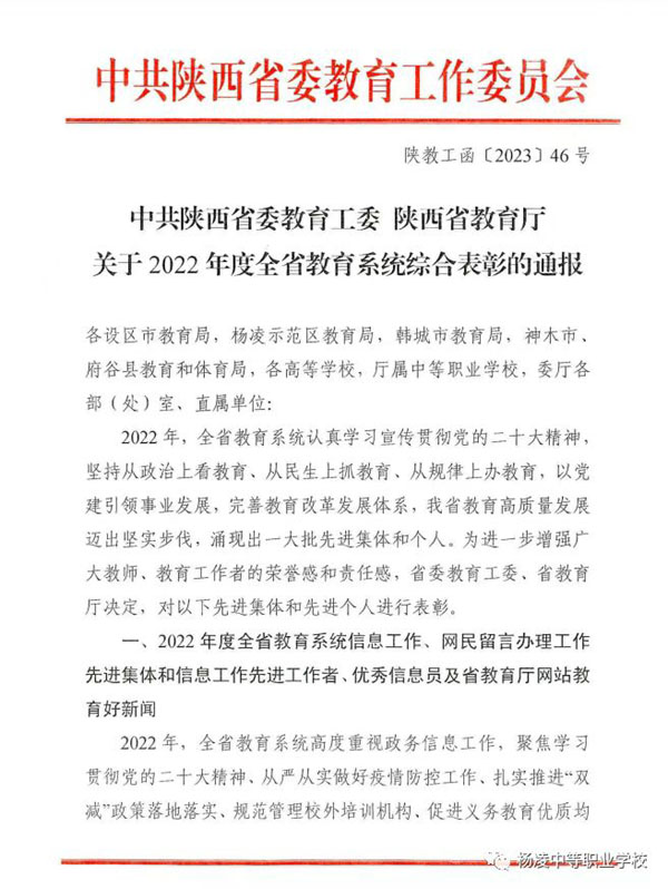 张岐老师多年来一直负责学生资助工作,他熟知政策、认真负责、责任心强、态度严谨、耐心仔细、毫无差错,得到了师生一致好评,被中共陕西省委教育工委陕西省教育厅评为2022年度陕西省学生资助工作先进个人。